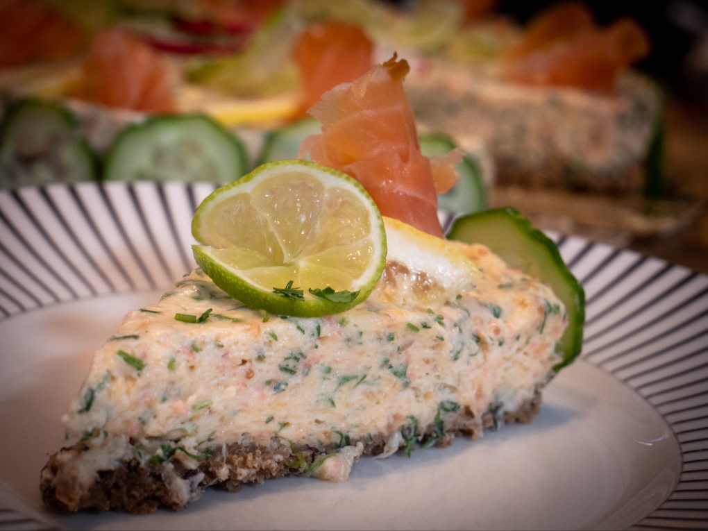 Läcker, krämig och ljuvligt god laxtårta med kallrökt lax och stenbitsrom.